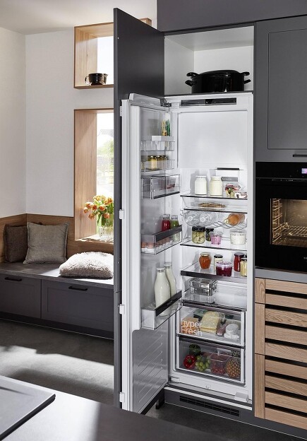 Das Gleiche gilt für den Kühlschrank: Wie oft hat man keine Hand frei oder aber keine sauberen Hände, benötigt unterm Kochen oder Kneten aber noch eine Zitrone oder Milch. Dann hilft „Kühlschrank, öffne dich“, und dabei auch, Fingerabdrücke zu vermeiden. Ganz besonders bei grifflosen Fronten zahlen sich per Sprachsteuerung auf- und zumachbare Kühlschränke besonders aus, ersparen sie doch letztlich hinterher Putzarbeit.